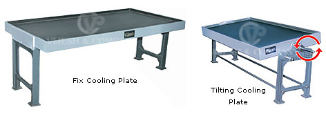 Cooling Plates are consists of fabricated structure having integrated eight cooling staggered chambers for cooling. As the tapped water passes through chambers the hot mass of Candy or Toffee mixture gets cooled which is spread on cooling Plate. The Cooling effect is controlled by reducing or increasing the flow of water.